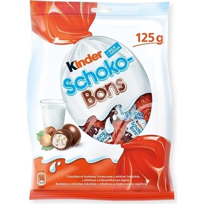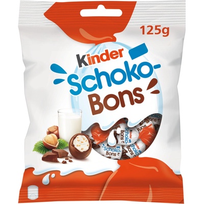 kinder Schokobons 125 g za internetové ceny Oblíbený produkt z kategorie: . kinder Schokobons 125 g máme běžně skladem. Zákonný název potraviny: Jemná mléčná čokoláda s mléčnou náplní (42,5 %) a kousky lískových oříšků. Složení produktu kinder Schokobons 125...
