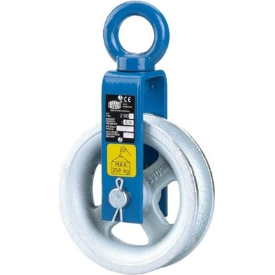 Kladka zednická s okem 500/B 0,5 t. jednoduchá konstrukce s okem, bez krytu Zednická kladka s okem slouží jako přenosné nářadí pro montážní a zednické práce při zvedání a tažení břemen ruční silou tahem konopného nebo polyamidového lana. Ke kladkám všech provedení...