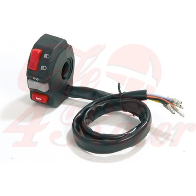 Levý přepínač světel, blinkrů a klaksonu. Přepínač je vhodný pro Motorhispania RX, RYZ, Peugeot XR6, Rieju RR a Spike 50. OEM čísla: 0007200140 / 0240052000003 / 754374.