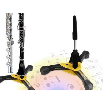 Skladný a velice stabilní stojan na příčnou flétnu, nebo klarinet Teleskopická špička potažena sametem. Hmotnost : 0,5 kg Rozměry : 185x90 mm Deluxe teleskopický, kompaktní...