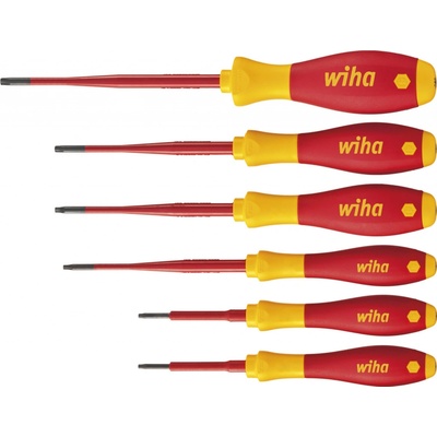 Izolován do 1000 V, Cr-V ocel pro vysokou odolnost, ergonomické rukojeti, 3 křížové a 3 ploché elektrikářské šroubováky.