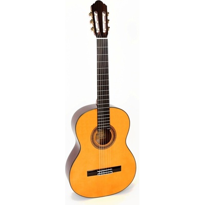 Klasická kytara s tělem z lípy, krkem z dřeviny mora, ebonizovaným javorovým hmatníkem a nylonovými strunami.