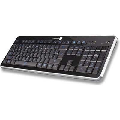 Connect IT klávesnice, LED podsvícená, USB, CZ/SK - černá Stylová klávesnice s LED podsvícením pro pohodlnou práci i zábavu. Model Office BlueShine přináší komfort klasického...