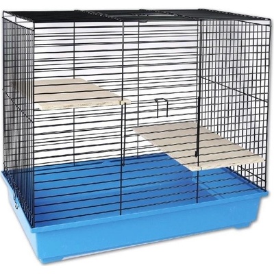 Klec s dráty ošetřenými barvou vhodná pro činčily, potkany, veverky a další drobné savce. Vybavení: 2 dřevěná patra. Rozměry: 71 x 40 x 63 cm (šířka x hloubka x výška)