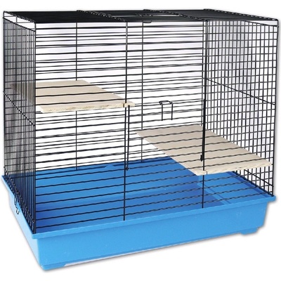 Prostorná klec z kvalitního plastu je vhodná především pro činčily, ale hodí se také pro zakrslé králíčky, veverky, fretky či jiné větší hlodavce. Součástí klece jsou dvě dřevěná patra. Rozměry: 59x36x55cm Rozteč drátů: 2cm Barva: různé barvy dna
