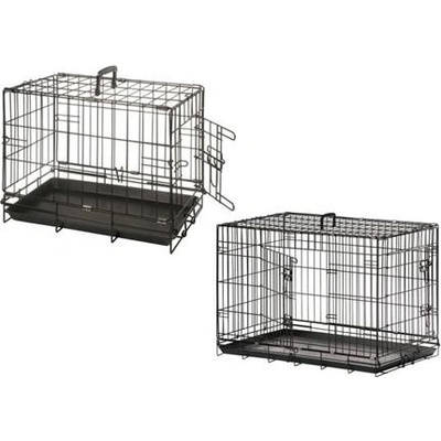 Drátěná klec v černé barvě se dvěma vchody pro malá zvířata s rukojetí. Velikost 77x47x54cm.