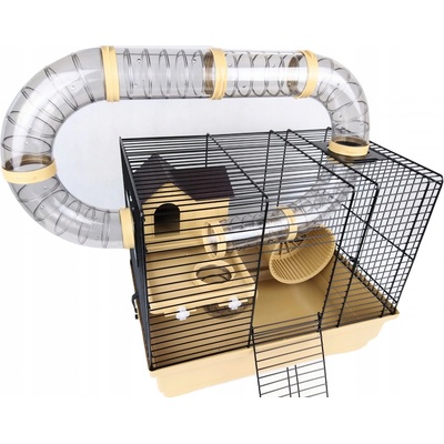 Klec určená pro malé hlodavce s výbavou. Rozměr klece: 40 x 25,5 x34cm Rozměr klece i s tunelem: 54 x 25,5 x 47cm Rozteč drátů: 1cmVchod: z boku Barva: mix barev