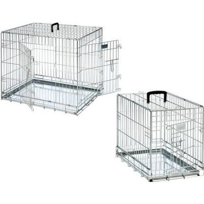 Drátěná klec se dvěma vchody pro malá zvířata s rukojetí. Velikost 77x47x54cm.