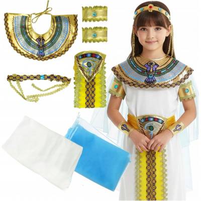 Kostým Šaty Převlek pro holčičku Kleopatra Princezna Karnevalový ples ✅ ŠATY + PLÁŠŤ + PÁS + LÍMEC + ČELENKA + 2 x ČELENKA NA RUCE - SET 7v1 ✅ POHÁDKOVÉ PŘEVLEKY KLEOPATRY –...