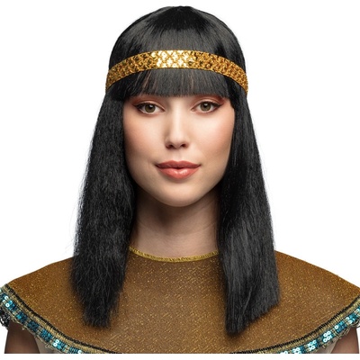 Dámská paruka Kleopatra, královna Nilu. Paruka obsahuje i zlatou čelenku Barva: černá Materiál: 100% polyester Určeno pro: dámská Balení paruky: plastový box Typ paruky:...