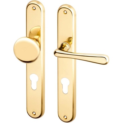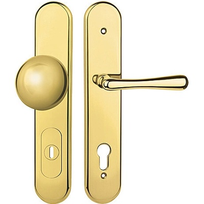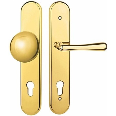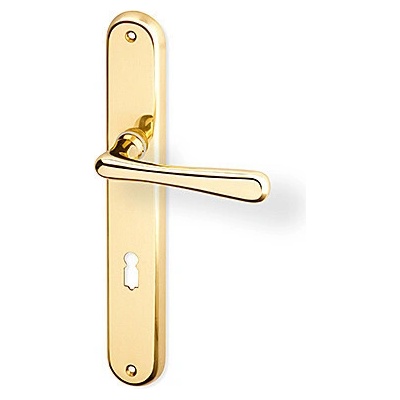 Mosazné kování s plnými klikami, tvarově vhodné například při renovaci historických a dobových interiérů. Povrchová úprava: leštěná mosaz Kování s vnitřní vratnou pružinou.