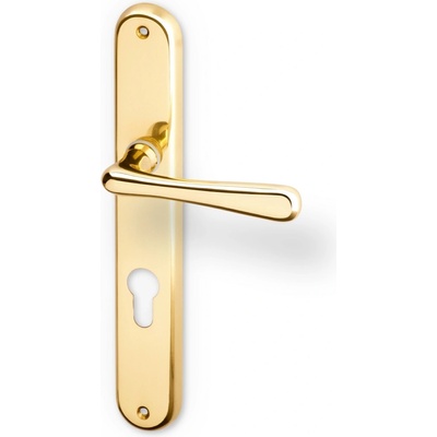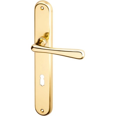 Kování ACT Elegant (mosaz) SPECIFIKACE: - štítové kování - materiál: leštěná mosaz - vratná pružina: ANO - montáž: vruty - použití: běžná frekvence pohybu ROZTEČ: - 72...