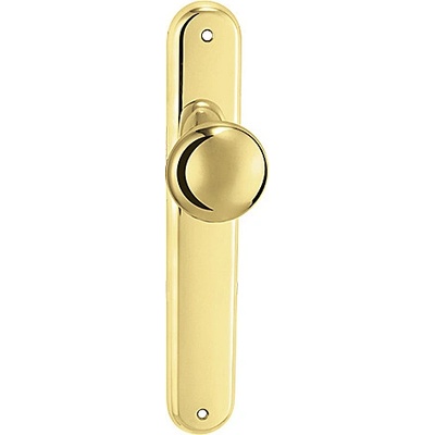 balení: 1 sada Štítové kování na dveře. Vlastnosti: Povrchová úprava: lesklá mosaz Varianta: klika-koule Rozteč: 72 mm Provedení: na vložku Orientace: levé