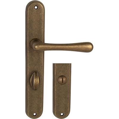 Mosazné kování s plnými klikami, tvarově vhodné například při renovaci historických dobových interiérů. WC set má čtyřhran 4x4 mm + redukce(přechodka) 4/6mm.