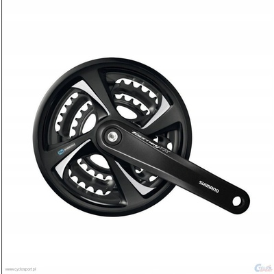 Základní model rekreačních krosových klik SHIMANO Tourney FC-TX801 - kliky s převodníky pro kola s 3x7/8-mi stupňovým pohonem. - Kliky s logem Shimano použitelné pro 8, 7, 6...