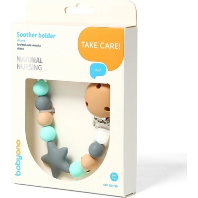 - s praktickým kovovým klipem pro upevnění na oblečení - s texturou - velmi příjemný na dotek - antibakteriální a odolný - vyrobený z potravinářského silikonu - neobsahuje...