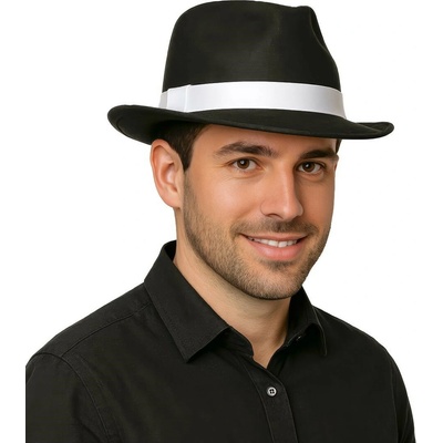 Černý klobouk s bílou stuhou - gangster