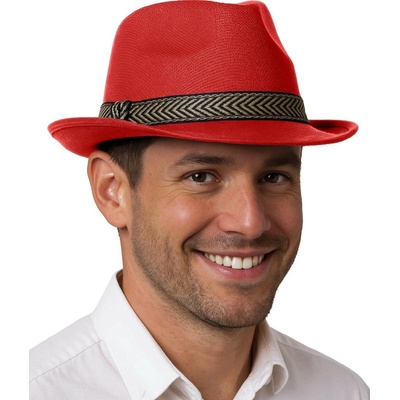 Červený flitrovaný klobouk v gangsterském stylu. Krásný doplňek na oslavu či párty. Vhodný pro muže i ženy, velikost 58.