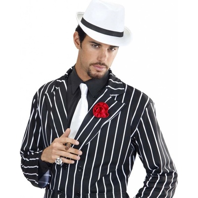 Bílý fedora klobouk pro mafiána Pravdou je, že mafiáni nosili převážně černé klobouky a pruhované bílo-černé obleky. Avšak díky dvojbarevnému obleku můžete zvolit také klobouk...