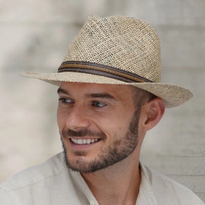Kvalitní klobouk Fedora vyrobený v Itálii tradiční manufakturou z mořské trávy Vás ochrání před sluníčkem, ale zároveň je velmi vzdušný a lehoučký. Klobouk je ozdoben koženým...