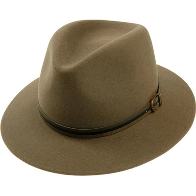 Plstěný klobouk se strečovým potním páskem zdobený koženým řemínkem. Šíře krempy 6 - 6,5 cm. Složení: 100% králičí srst.
