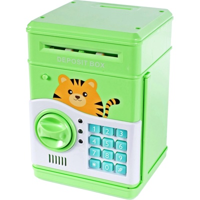 Roztomilá pokladnička ve tvaru sejfu s motivem kočičky v zelené barvě potěší děti i dospělé. Po přiložení bankovky se bankovka automaticky vtáhne a sejf přehraje jednu ze 7...