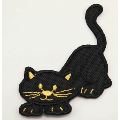 Černá kočička se zlatými linkami, která číhá na myšku je dětská zvířátková nažehlovačka na textil a hodí se na zamaskování díry na oblečení, prošoupaná kolena, ale také jako...