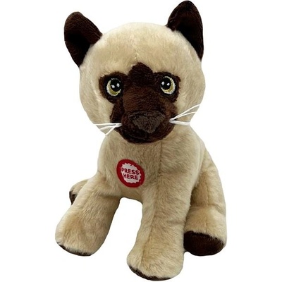 Plyšová kočka zvuková. Po stisknutí vydává zvuky. Rozměry cca 23 x 13 x 15,5 cm (bez ocasu). Délka ocasu cca 9 cm. Napájení na 3 AG13 baterie (jsou součástí). Věk 0+
