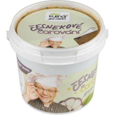 Pasta s kousky česneku a sekanými listy medvědího česneku. Vhodný nejenom jako syrový česnek do pokrmů ale i do pomazánek, studených omáček či marinád. Složení: česnek 80%,...