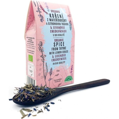 SLOŽENÍ BIO mateřídouška tradiční česká sušená a řezaná stonek a květ, BIO Levandule Chodouňská sušená a řezaná stonek a květ, BIO Citronová tráva sušená a řezaná. KOŘENÍ Z...