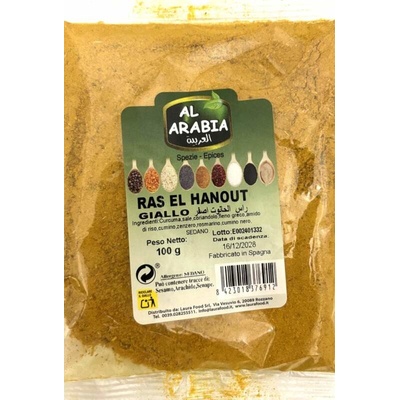 Kořenící směs Ras el Hanout žlutý 100 g Složení: Kurkuma, sůl, koriandr, řecké seno, rýžový škrob, římský kmín, zázvor, rozmarýn, černý kmín. Země původu: Španělsko.