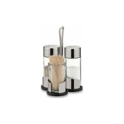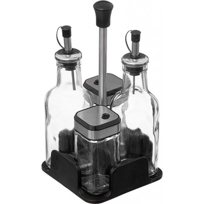 Stolní dochucovací souprava pro domácnosti i gastronomická zařízení. Vyrobeno z prvotřídní nerezavějící oceli, skla a odolného plastu.