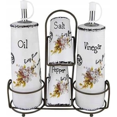 Sada kořenek s lahvemi a skleničkami – nezbytnost v každé kuchyni Elegantní a funkční: Sada se skládá ze dvou skleněných lahví na olej a ocet a dvou skleniček na sůl a pepř,...