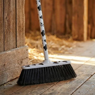 Plastový smeták dekorovaný s násadou 120cm s hrubým závitem. Šířka celkem 32 cm, délka celkem 130 cm.