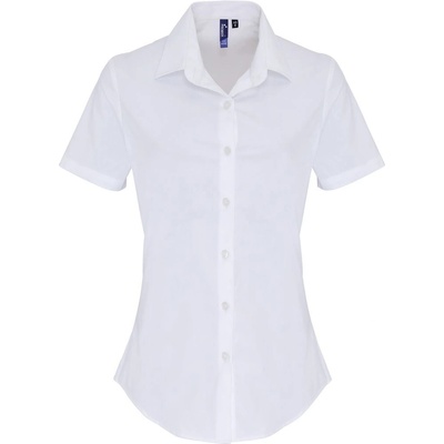 Popelínová elastická halenka s krátkým rukávem - lehce vypasovaný střih, knoflíková léga bez viditelných švů, zaoblený lem, záševky na přední a zadní straně - materiál: 97%...