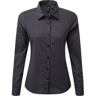 Popelínová kostkovaná halenka s dlouhým rukávem 115g/m², 100% bavlna vypasovaný střih, měkký límec, manžeta se 2 knoflíky, malý kostkovaný design, pratelné na 40°,...