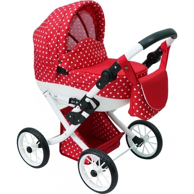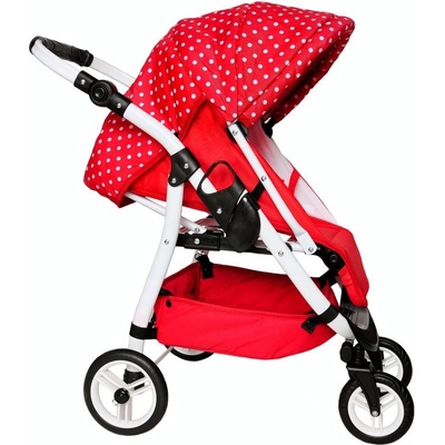 Jasmine Kočárek pro panenky Kids Sport Červený puntík ---Věrná imitace maminčina kočárku Otočný sporťák Pěnová kolečka Kapsička a košík