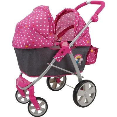 Puntíkatý kočárek pro panenky JASMINE Kids 9 růžový puntík: * Moderní, odnímatelná hluboká vanička se skládací stříškou * Bílá polstrovaná podložka do vaničky * Možnost změny směru otočení korby * Bílá, pevná konstrukce s možností lehkého a rychlého složení * Výškově...