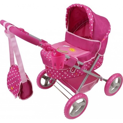 Jasmine Kočárek pro panenky Kids Sport Růžový puntík ---Věrná imitace maminčina kočárku Otočný sporťák Pěnová kolečka Kapsička a košík