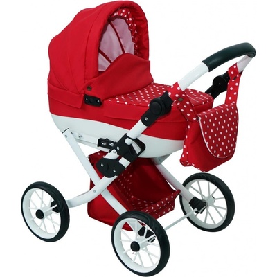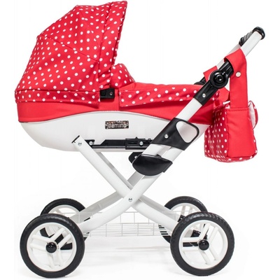 Dětský kočárek pro panenku JASMINE Kids 12 červený puntík Kočárek pro panenky JASMINE Kids: * Moderní, odnímatelná hluboká vanička se skládací stříškou * Bílá polstrovaná...