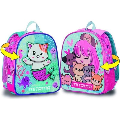 Batoh oboustranný s motivem štěně - kočka Pro předškoláky • 2 přihrádky, 2 zipy • 2 motivy • Oboustranné ramenní popruhy pro změnu motivu • Extrémně odolný a voděodpudivý...