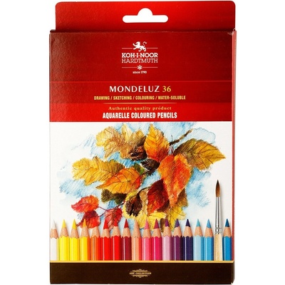 KOH-I-NOOR Akvarelové pastelky Mondeluz 3719 - 36 ks Umělecká souprava akvarelových pastelek. Pastelky vynikají světlostálostí, čistotou barev a barevnou škálou čítající až 72 různých barevných odstínů. Při aplikaci štětce a vody lze jejich stopu zcela rozmalovat a...