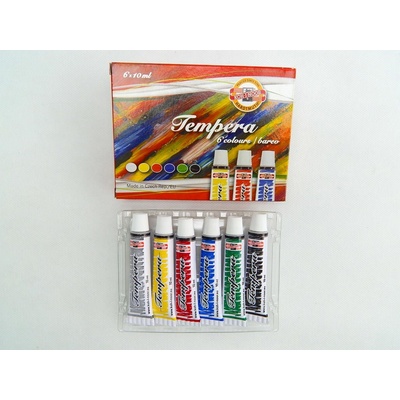 Vodou ředitelné temperové barvy Koh-i-noor - 10 barev v tubách po 16 ml Školní vodou ředitelné temperové barvy Koh-i-Noor sada 10 kusů po 16 ml. Souprava 10 barev: bílá, žlutá, oranžová, červená, světle modrá, tmavě modrá, světle zelená, tmavě zelená, hnědá, černá. Kód...