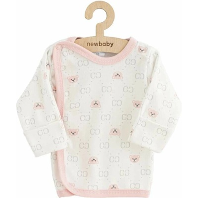 klasická bavlněná košilka méďa bílorůžová pro novorozená miminka to nejpohodlnější oblékání, zapínání na boku na baby druky, na rukávcích přehrnovací rukavičky, zabrání...