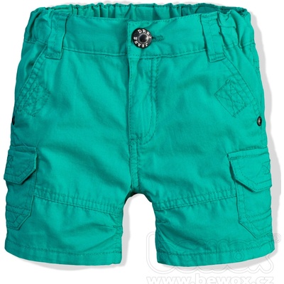 Kojenecké plátěné šortky. Kapsy na nohavicíh a vpředu funkční, vzadu falešné. Ozdobné prošívání. V pase nastavitelná guma.