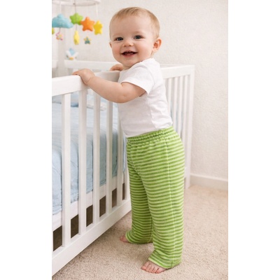 Praktické pohodlné kalhoty, v pase ukončeny do širokého lemu. Do velikosti 68 včetně je pas pouze do nápletu, od velikosti 74 je v pase tkaná pruženka šíře 2cm (neohýbá...