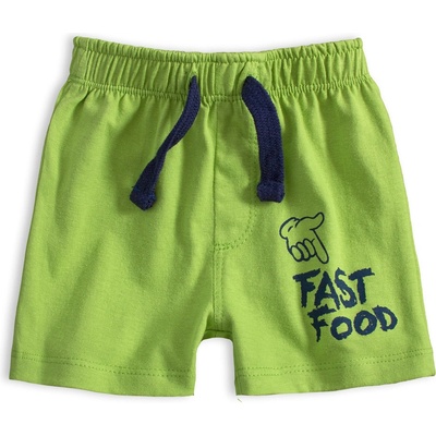 Kojenecké šortky z bavlněného úpletu. V pase guma, tkanička pouze ozdobná. Potisk na nohavici, dvojitý spodní lem.