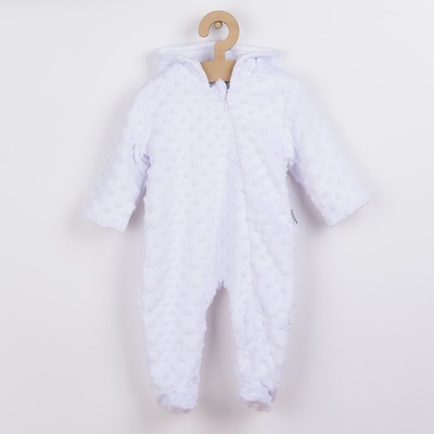 Overálek s kapucí a oušky Nicol Bubbles pro miminka. Je vyrobený z Minky látky, která je velmi hebká na dotek s malými výstupky. Overálek je podšitý bavlněnou podšívkou....