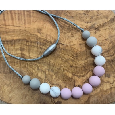 Kojící korále z nové kolekce v jemných pastelových barvách, které se hodí k veškerému oblečení. Variant je velké množství na fotce ve verzi v kombinaci Lila, šedá a marble,...