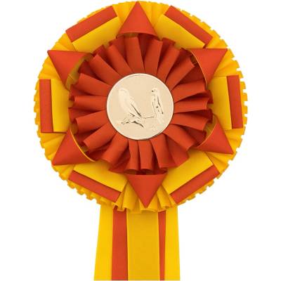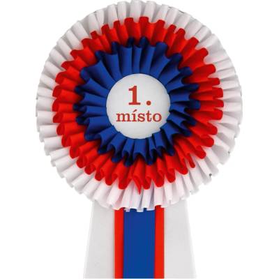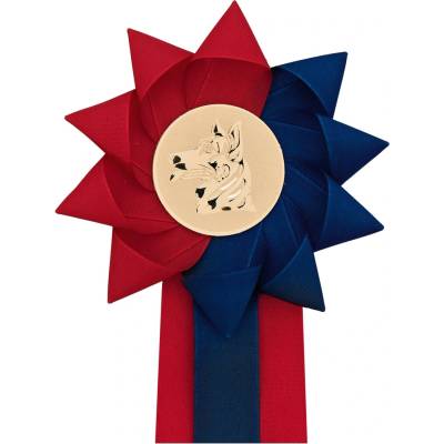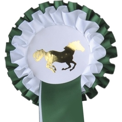Jezdecká kokarda na závody. Barvy jsou kombinovány s bílou stuhou. Průměr kokardy cca 11 cm, šířka stuhy 4 cm, délka stuhy cca 25 cm. Celková délka 32 cm. Vyrobeno v EU. Průměr...